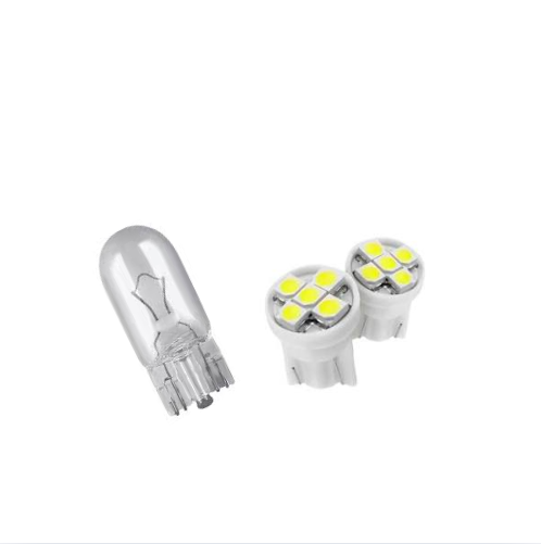 A T10 é uma lâmpada de encaixe por pressão (cunha) que possui um único filamento, sendo responsável por uma única função de baixa intensidade.