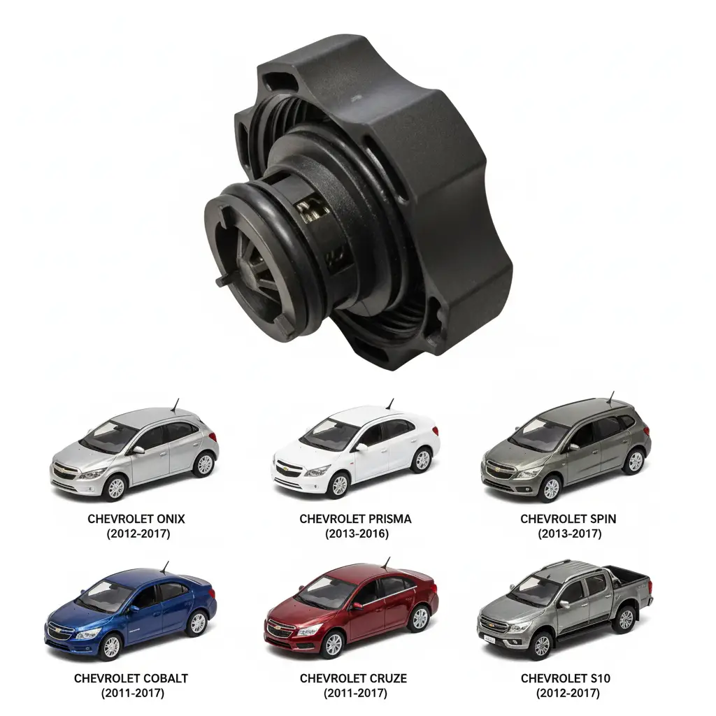 Descrição do Produto: Código Interno: 226602 Código do Fabricante: 24099 Produto: Tampa do Reservatório de Expansão Pressão de Trabalho: 1.4 BAR Cor: Preta (Identificação Visual) Marca do Fornecedor: FLORIO Aplicações Específicas por Modelo e Ano: Chevrolet: Onix (2012 a 2017) Prisma (2013 a 2016) Spin (2012 a 2017) Cobalt (2011 a 2017) Cruze (2011 a 2017) S10 (2012 a 2017) Trailblazer (2012 a 2017) Sonic (2012 a 2017) – Hatch e Sedan Informação Adicional: Produto compatível com veículos Chevrolet. A venda pode ser realizada com a marca FLORIO ou TRINK , sendo a seleção final automática e baseada exclusivamente na disponibilidade em estoque no momento da confirmação do pedido.