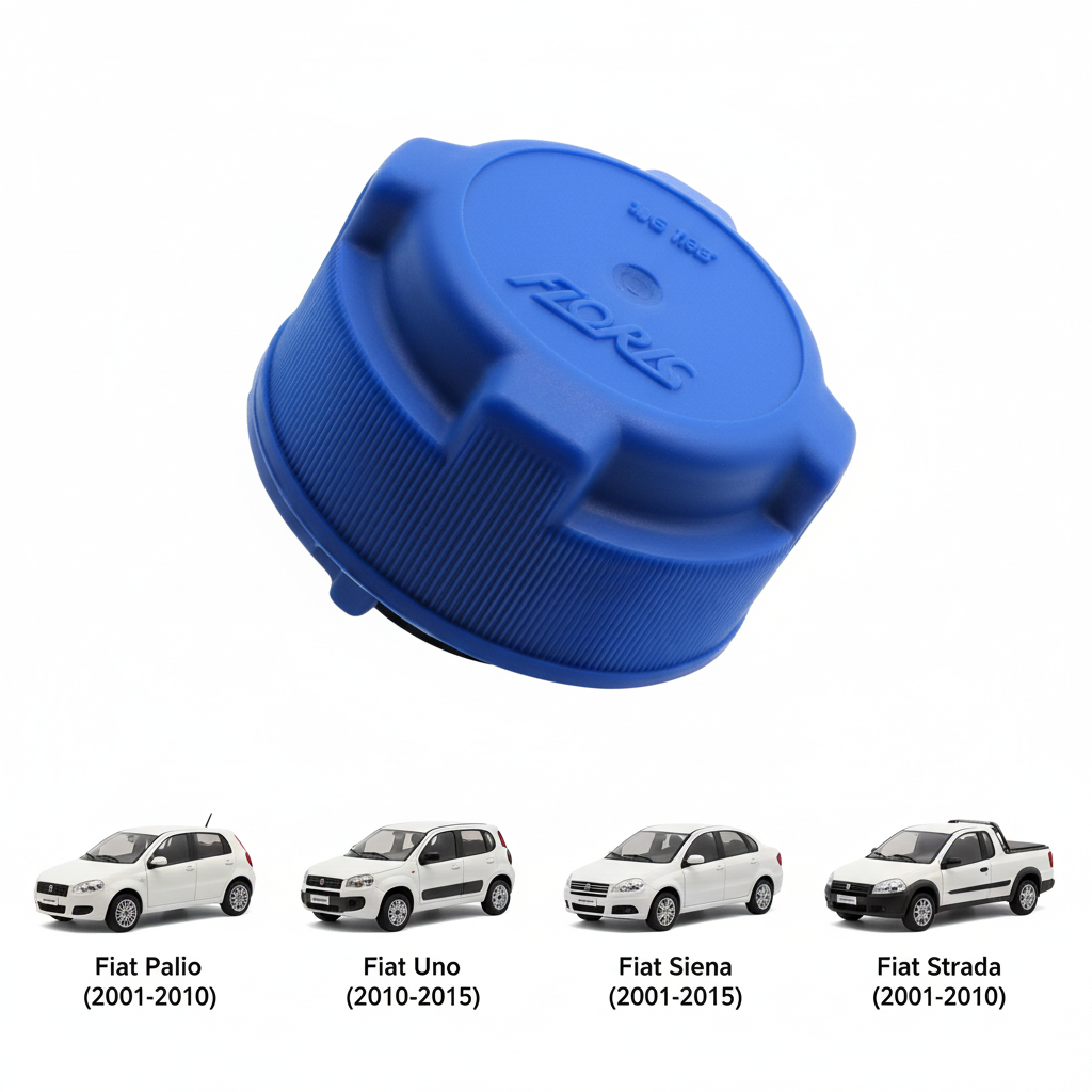 Descrição do Produto: Código Interno: 424226 Código do Fabricante: 23047 Produto: Tampa do Reservatório de Expansão Pressão de Trabalho: 1.4 BAR Cor: Azul (Identificação Visual) Característica Especial: Tampa com Válvula Alternativa (em alguns modelos) Marca do Fornecedor: FLORIO Aplicações Específicas por Modelo e Ano: Fiat: Palio (2001 a 2010) – Fire 8/16V Palio (2001 a 2010) – Weekend Fire 8/16V Uno (2010 a 2015) – Com válvula Siena (2001 a 2010) – Fire 8/16V Strada (2001 a 2010) – Fire 8/16V Idea (2005 a 2010) – Fire 8/16V Doblo (2001 a 2010) – Fire 8/16V Stilo (2002 a 2011) – Fire 8/16V – Com válvula Marea (1998 a 2008) Marea (1999 a 2008) – Weekend Brava (1999 a 2003) Punto (2007 a 2015) – Fire – Com válvula Linea (2009 a 2016) – Com válvula Bravo (2011 a 2015) – Com válvula Informação Adicional: Produto compatível com veículos Fiat. Alguns modelos utilizam Tampa com Válvula Alternativa. A venda pode ser realizada com a marca FLORIO ou TRINK , sendo a seleção final automática e baseada exclusivamente na disponibilidade em estoque no momento da confirmação do pedido.
