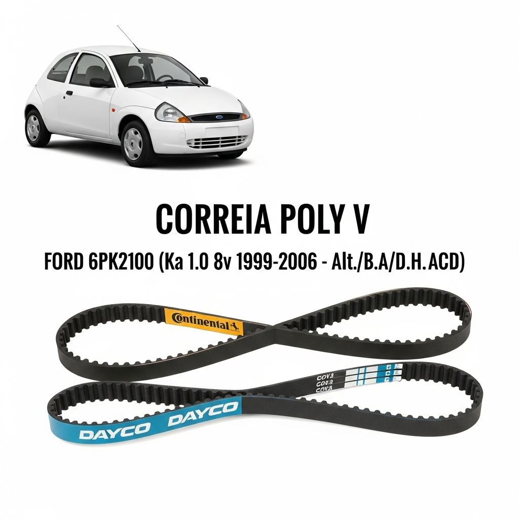 A marca da correia Poly-V utilizada será Dayco ou Continental, conforme a disponibilidade em nosso estoque.