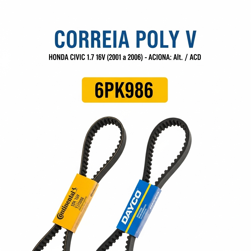 CORREIA POLY V HONDA 6PK986 (Civic 1.7 16v 2001 a 2006 – Alt./ACD)