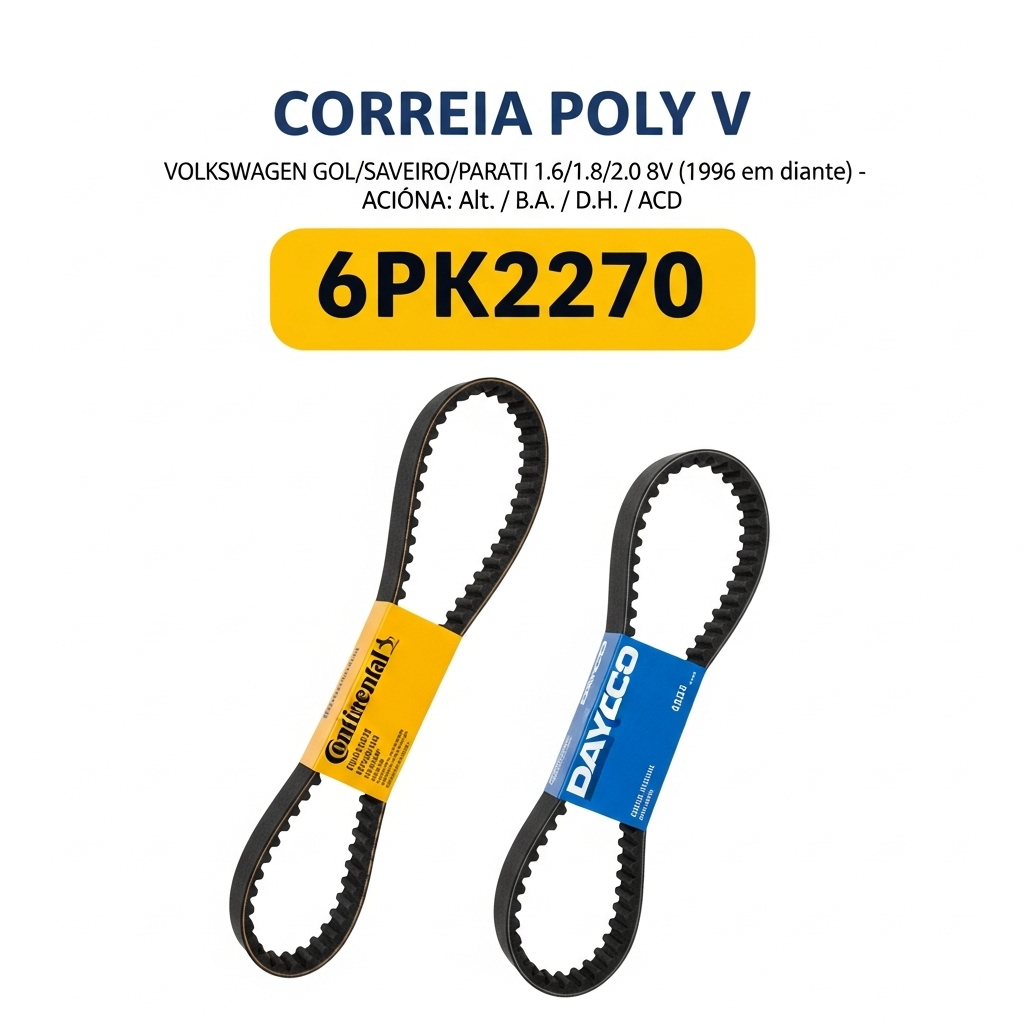 CORREIA POLY V Volkswagen 6PK2270 (Gol/Saveiro/Parati 1.6/1.8/2.0 8v 1996 em diante – Alt./B.A./D.H./ACD)